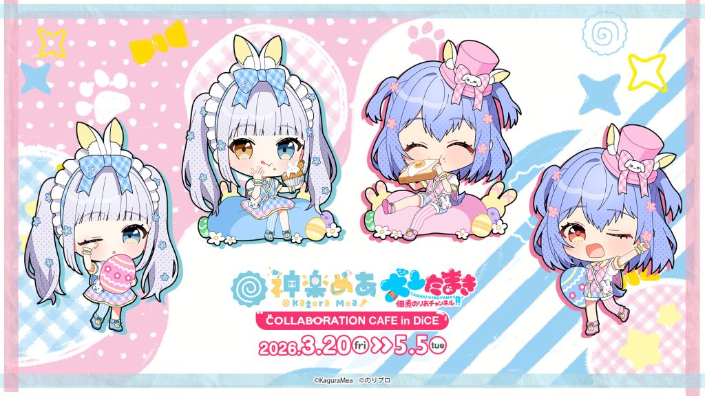 Popular VTubers Inuyama Tamaki and Kagura Mea will launch a collaboration cafe at internet cafe and karaoke DiCE as well as eSPORTS CAFE AIM from March 20 to May 5, 2026.