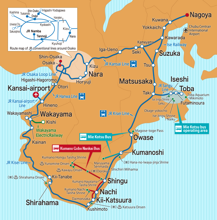 - Designated bus lines operated by Kumano Gobo Nankai and Mie Kotsu in the Ise and Kumano areas.