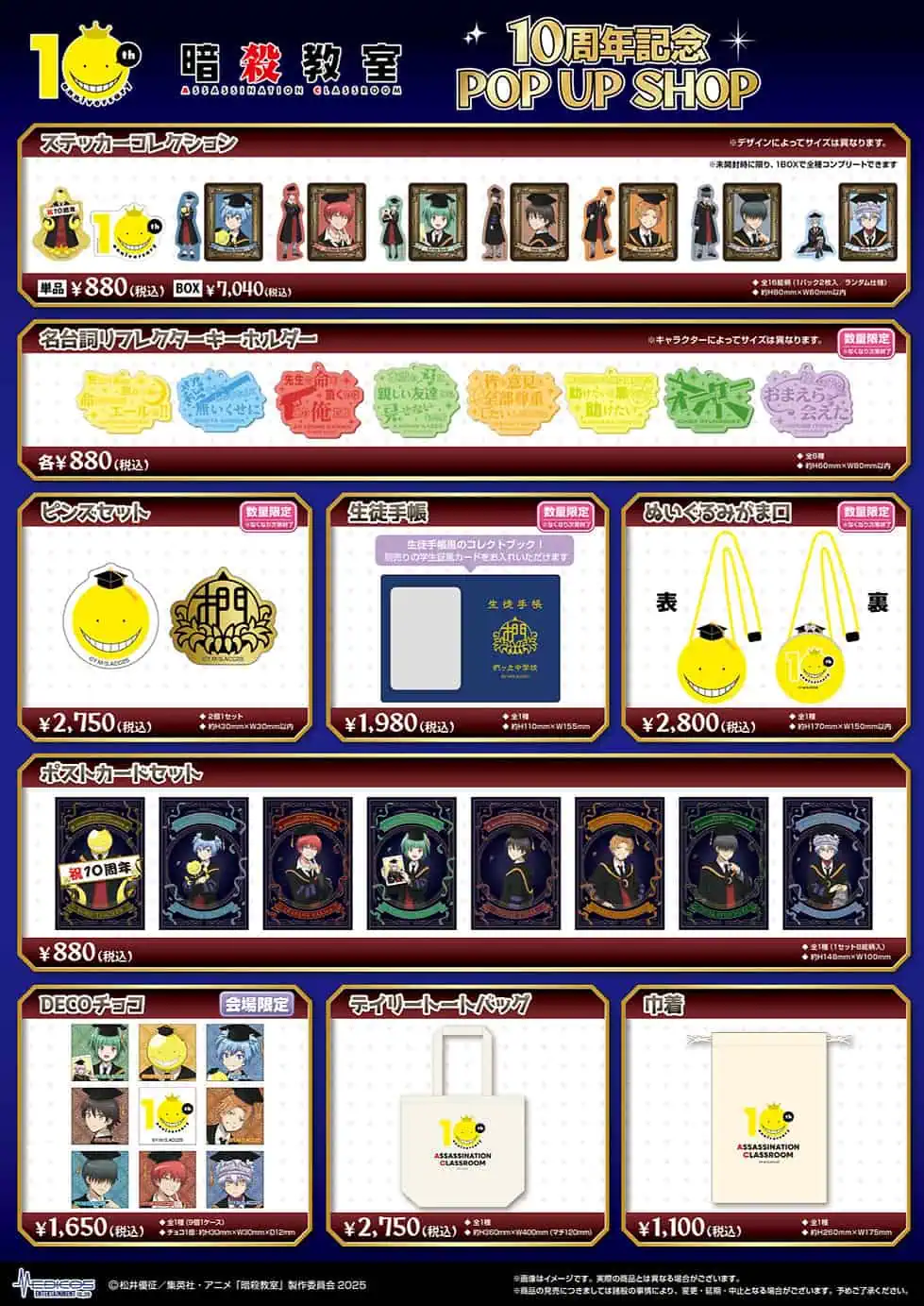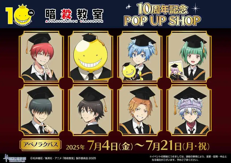 Assassination Classroom “10th Anniversary” pop up shop opens in Osaka this July