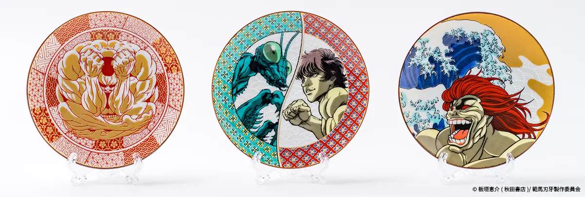 3 different Kutani ware plates will be available, each based on a different character from the Baki series.