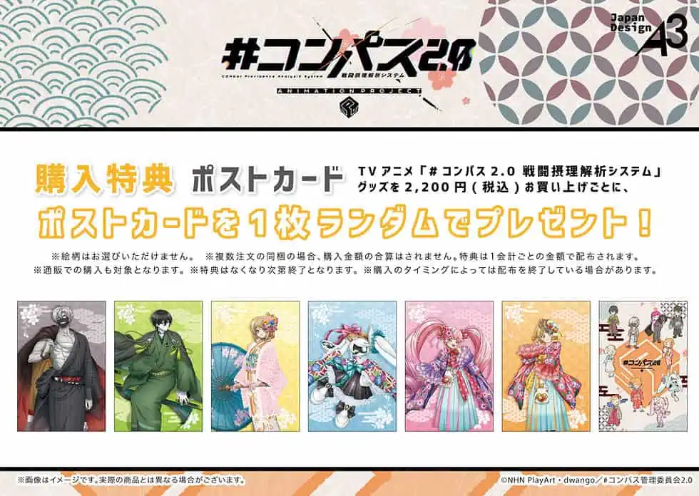 For every 2,200 yen spent at the pop up shop, customers will receive 1 exclusive postcard (selected at random from 7 types).