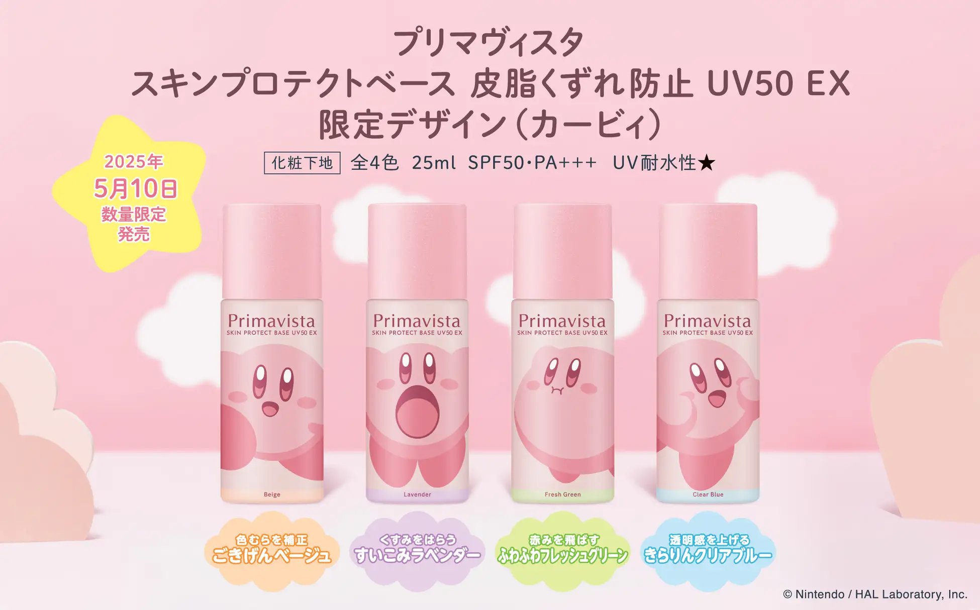 Four limited-edition Kirby-themed versions of the product will be available at Primavista retailers nationwide, including drugstores, major supermarkets, and online stores, starting Saturday, May 10th, 2025.