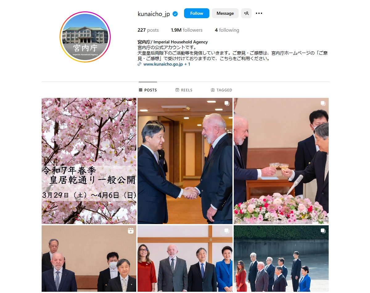 The content shared on the Instagram account typically offers glimpses into the official activities of Emperor Naruhito, Empress Masako, and other members of the imperial family.