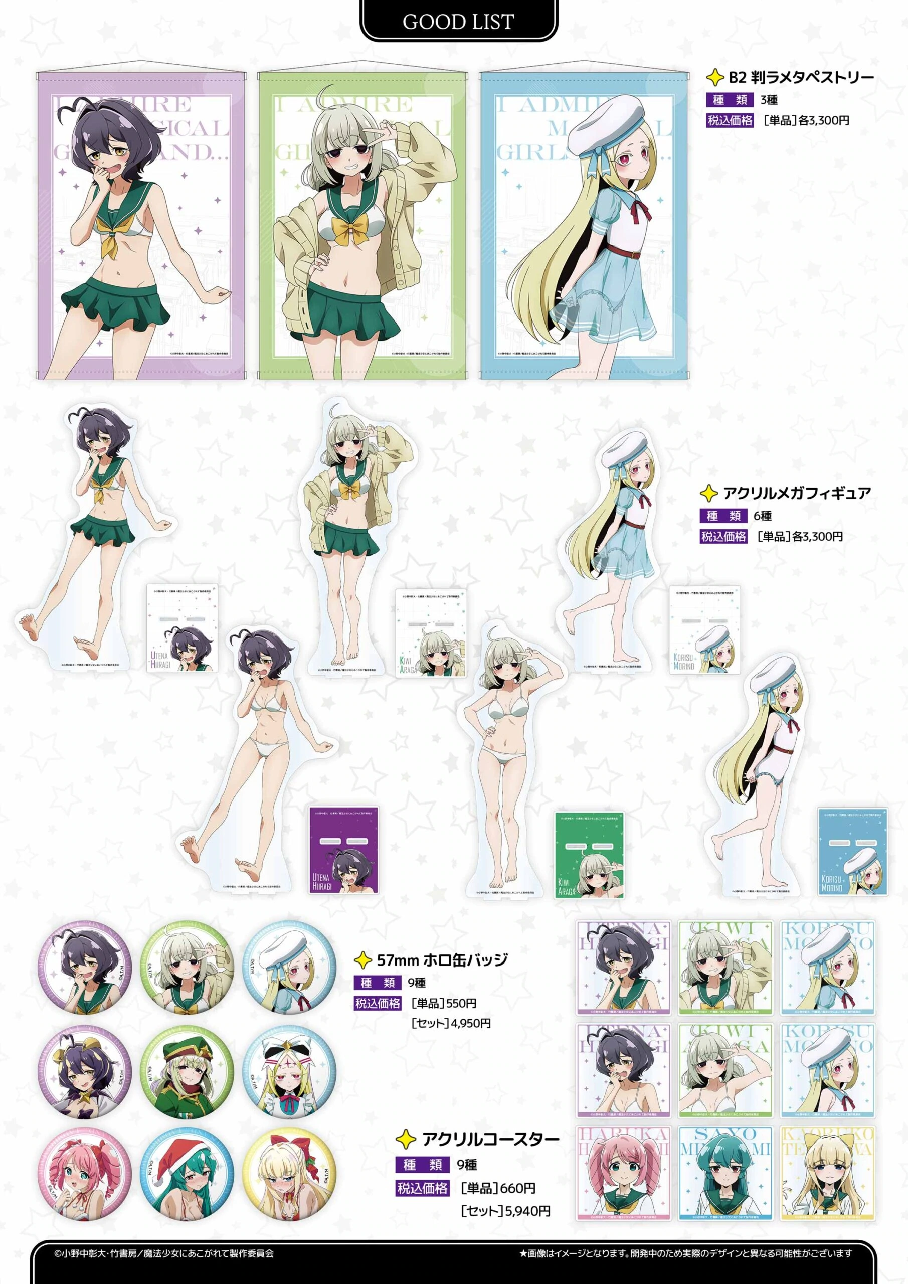 A wide variety of goods will be on sale, including badges, art cards, acrylic stands and more.