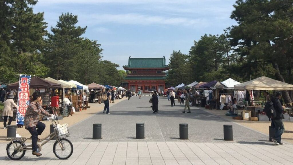 Heian Antique Market takes place at Okazaki Park in front of Heian Shrine once a month from 09:00 to 16:00.