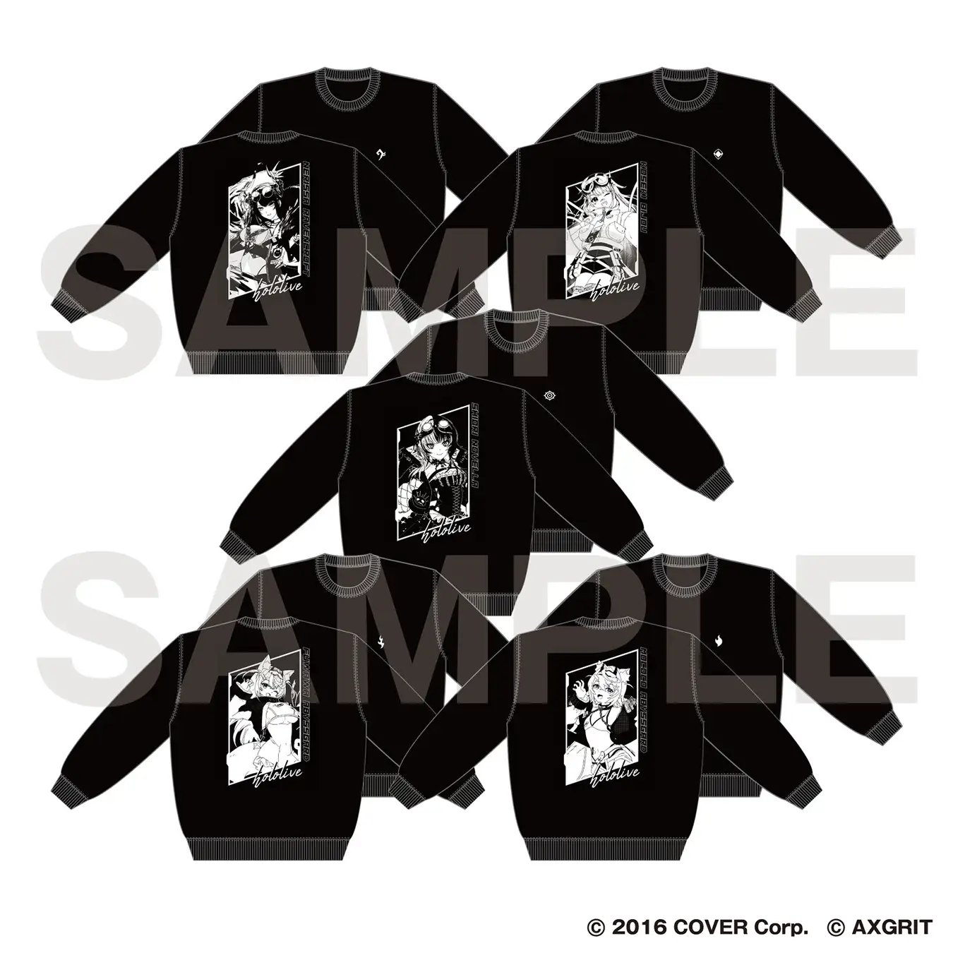 - Sweatshirts (L/XXL): 5 types, priced at 7,700 yen each (tax included).