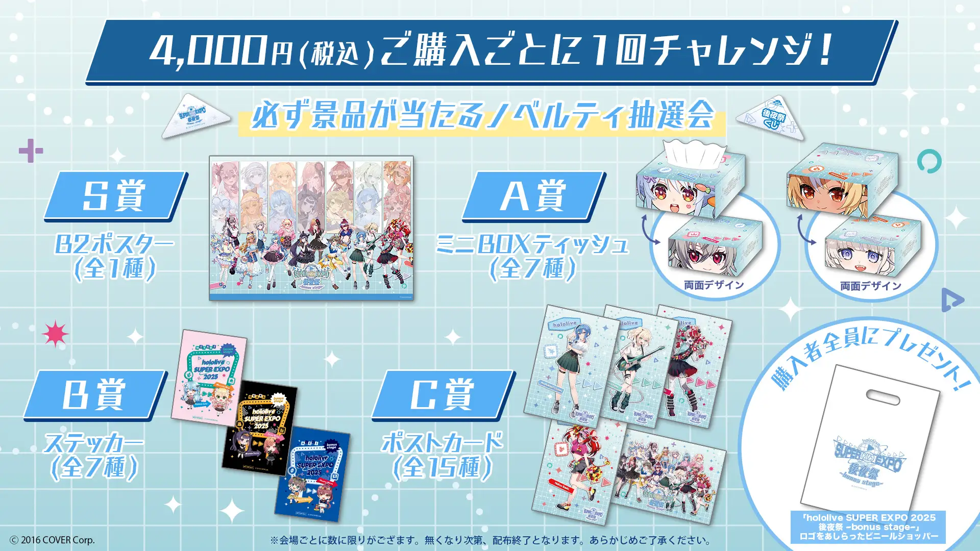 Customers who purchase merchandise at the pop up shop will receive a vinyl shopper with the hololive ‘SUPER EXPO 2025’ After Party logo printed on it.