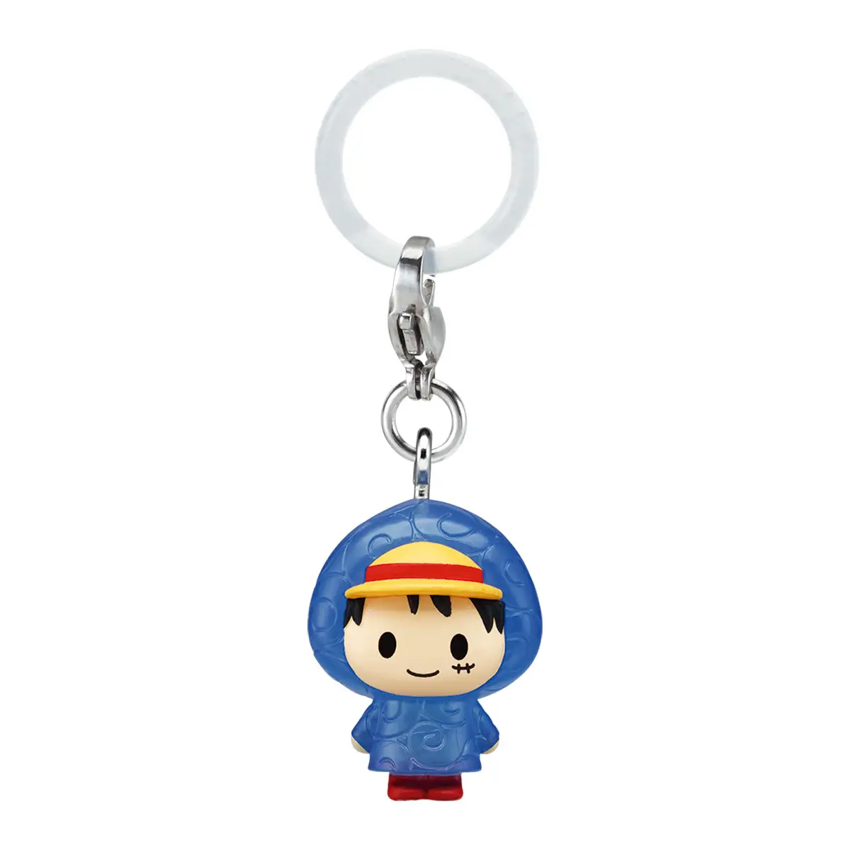 A series of five pop-art style sign accessories featuring characters from the “ONE PIECE” anime wearing raincoats with Devil Fruit designs.