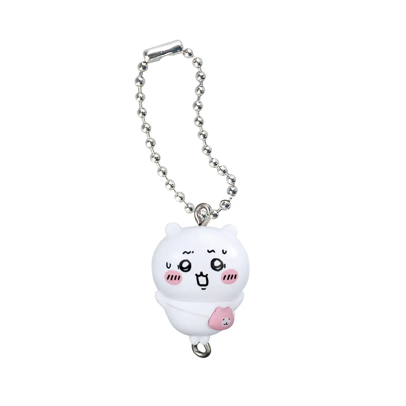 A series of eight rubber mascot figures from the “Chiikawa” manga and anime series, designed to be connected or carried.
