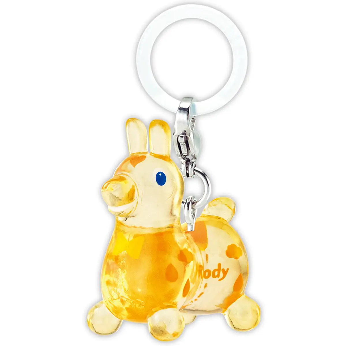 A collection of nine colorful RODY (a popular inflatable toy horse) figures designed as sign accessories.