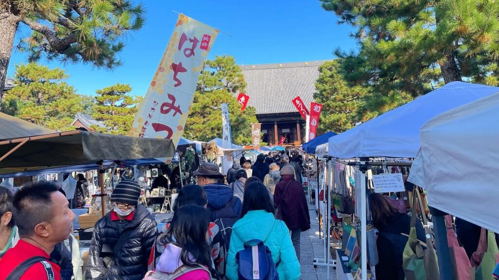 Hyakumanben Handicraft Market takes place on the 15th of each month from 08:00 to 16:00.