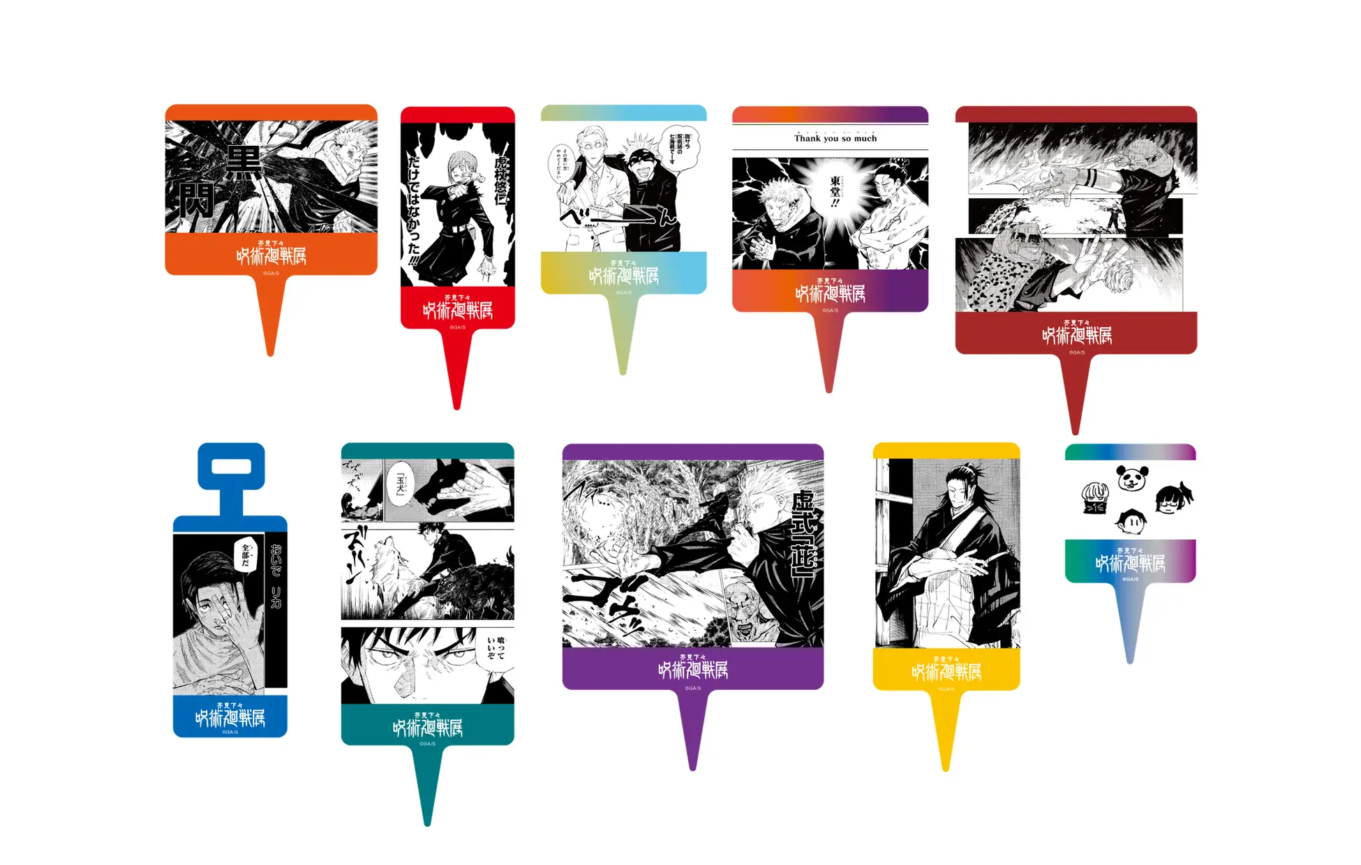Each menu item also comes with a pick, or tag, featuring a scene from the Jujutsu Kaisen manga:
