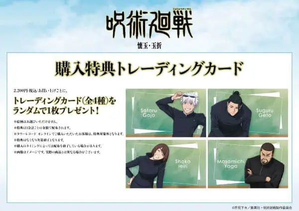 For every 2200 yen spent at the pop up shop, customers will receive 1 exclusive trading card (selected at random from 4 types).