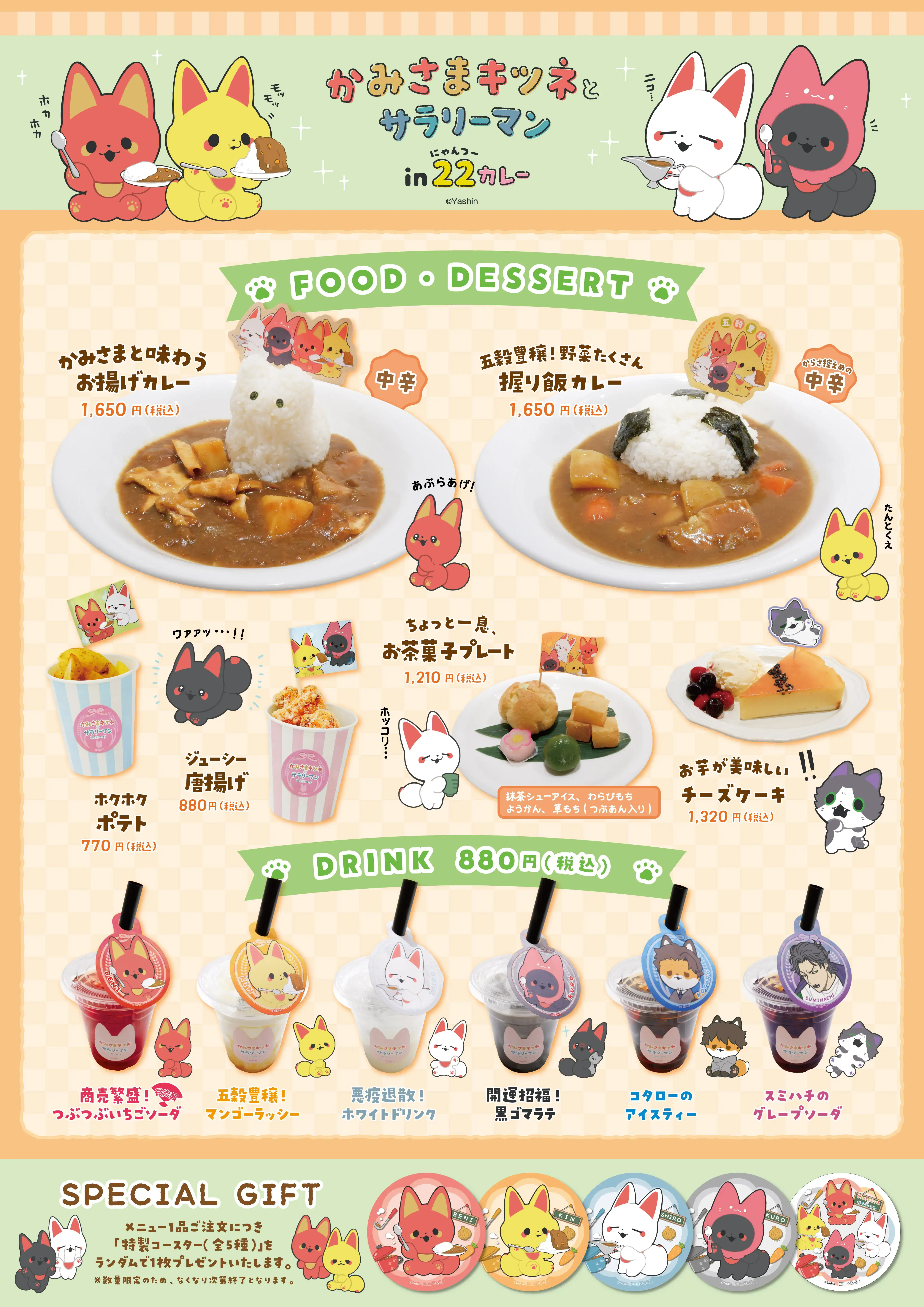 22 Curry will be hosting a new Kamisama Kitsune to Salaryman themed collaboration cafe where you can enjoy a wide variety of menu items.
