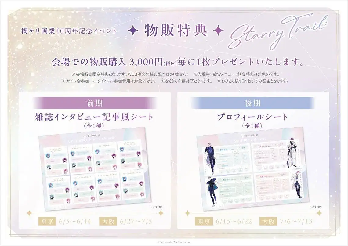 For every 3,000 yen spent at the café, customers will receive 1 exclusive Magazine interview article style sheet (selected at random from 2 types).