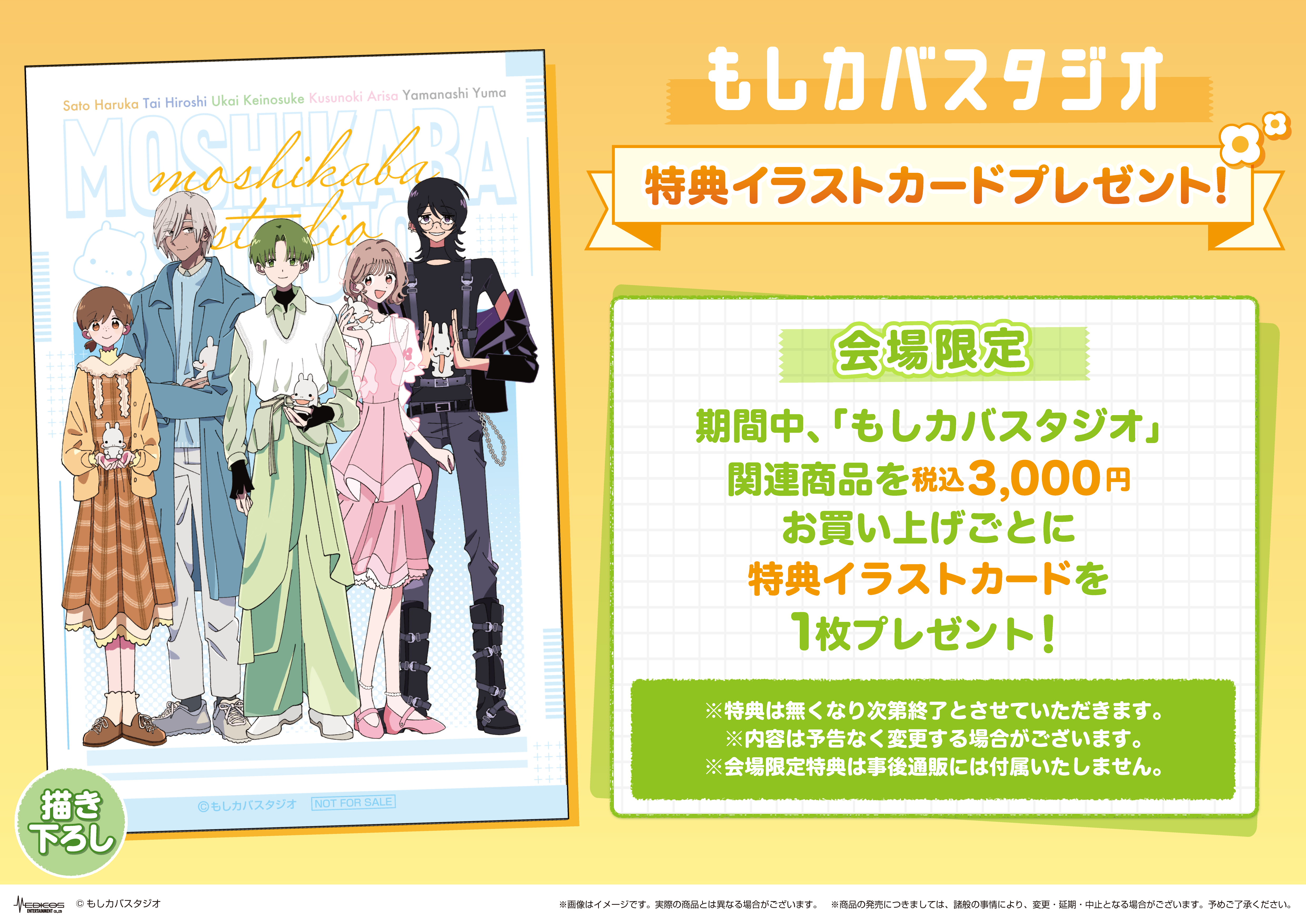 Customers who spend over 3,000 yen will receive an exclusive group illustration card.