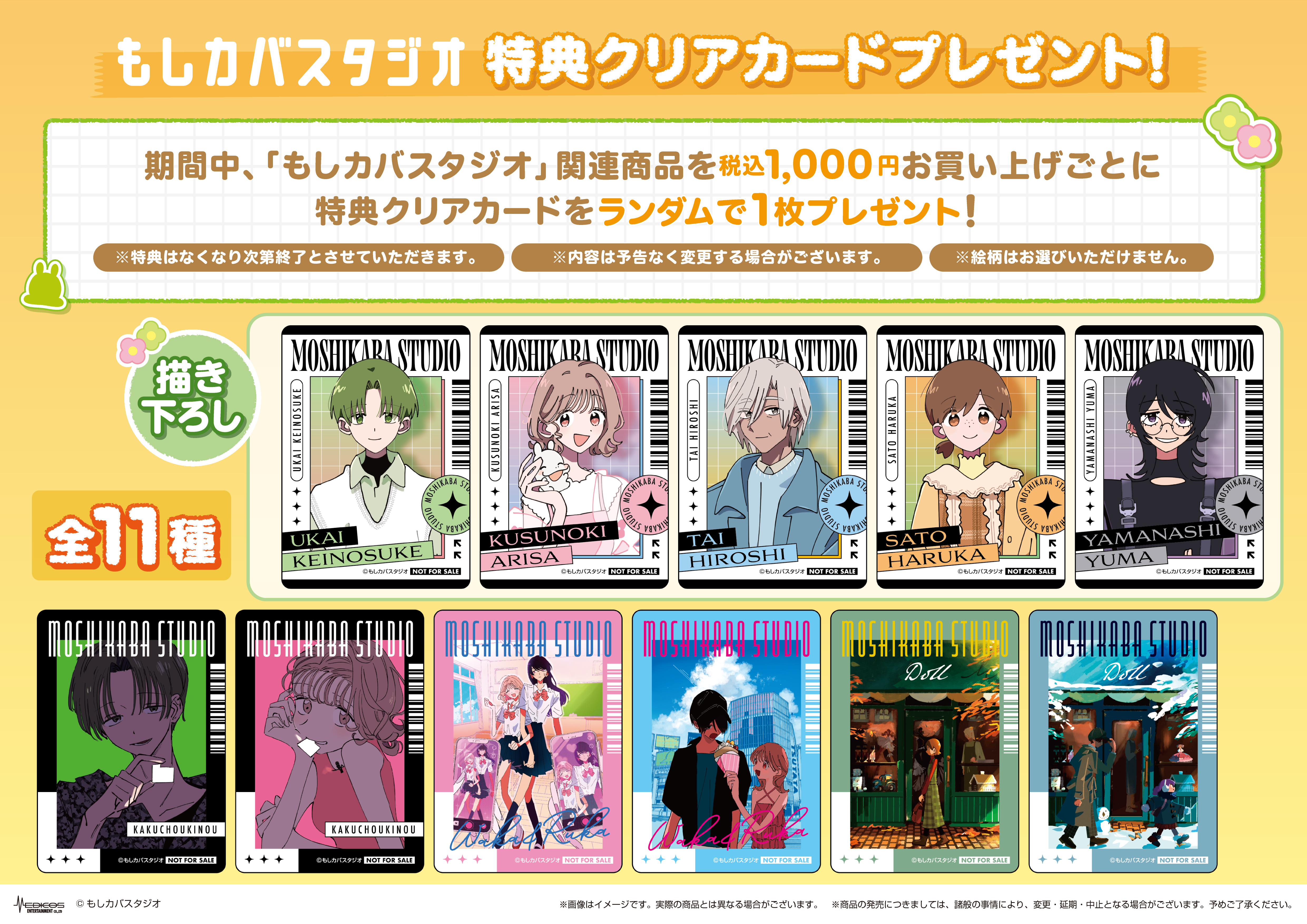 For every 1,000 yen spent at the pop up shop, customers will receive 1 exclusive illustration card (selected at random from 11 types).