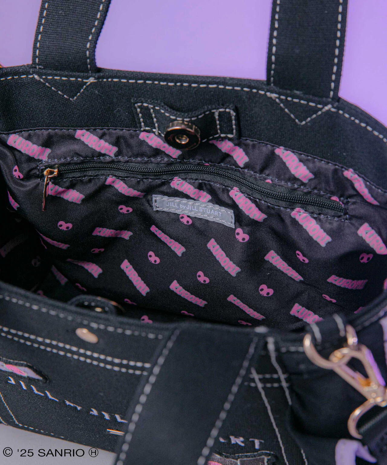 The tote features a stylish purple color scheme and an all-over print lining showcasing Kuromi’s playful side.