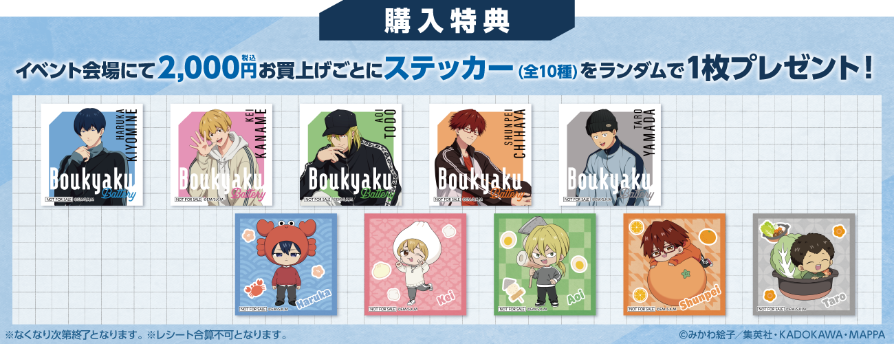 For every 2,000 yen spent at the pop up shop, customers will receive 1 exclusive sticker (selected at random from 10 types).