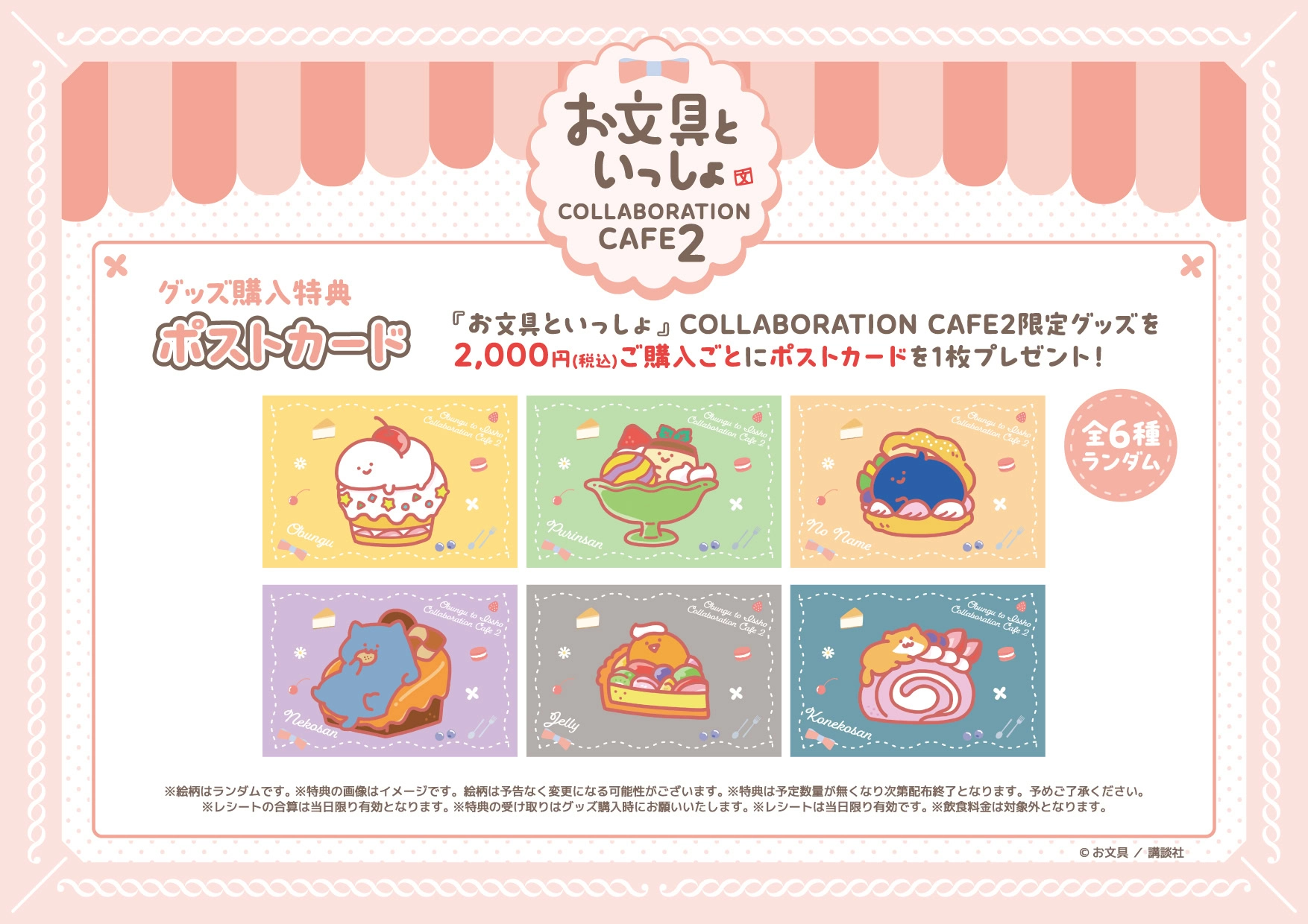 For every 2,000 yen customers will receive one of 6 special event postcards (design selected at random).