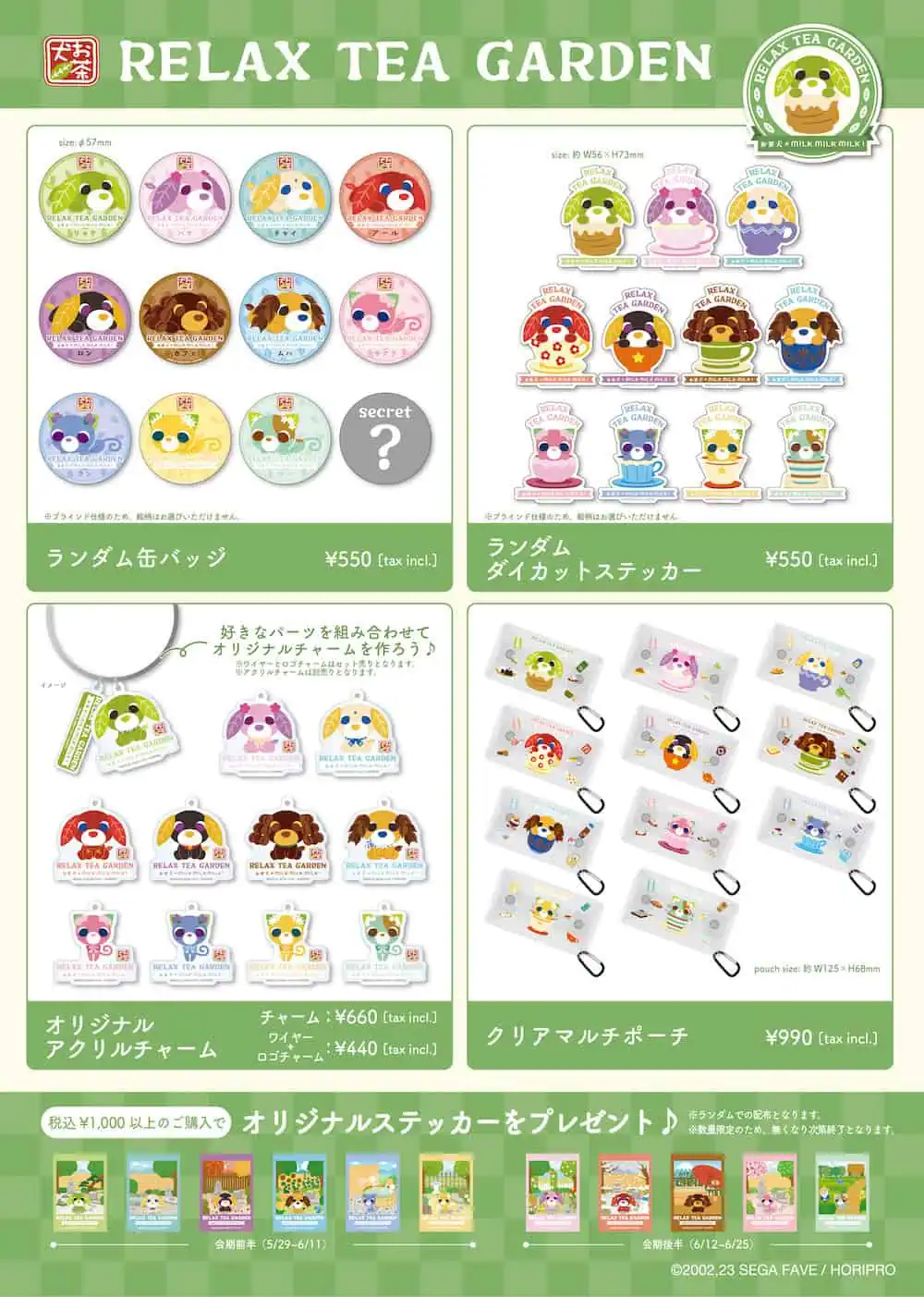For every 1,000 yen spent at the café, customers will receive 1 exclusive sticker (selected at random from 11 types, pictured at the bottom of menus)