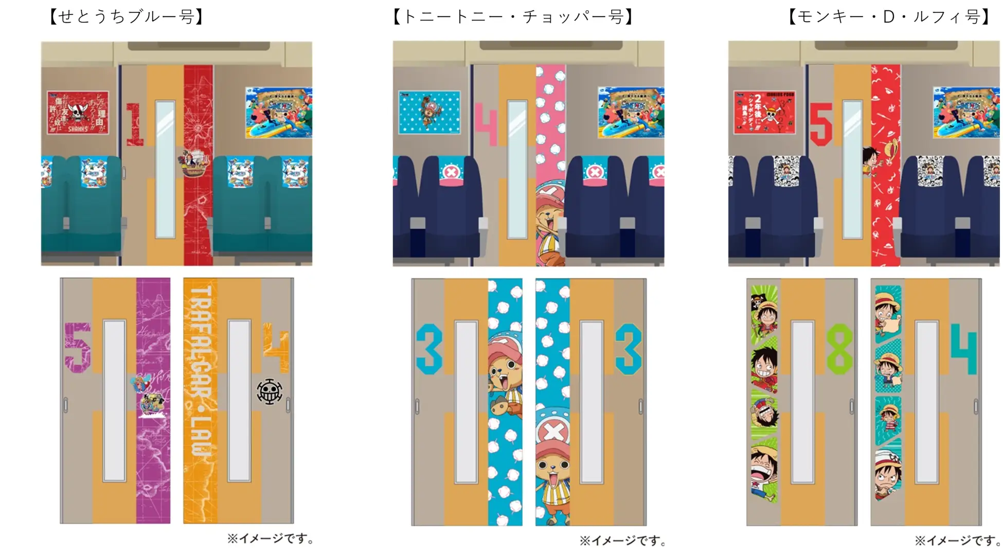 - In addition to seat wrapping, original head covers will be installed on all seats to reinforce the “ONE PIECE” theme.