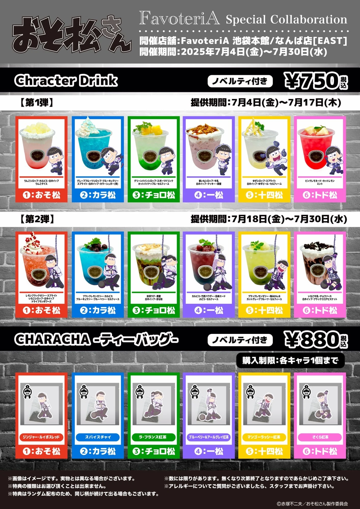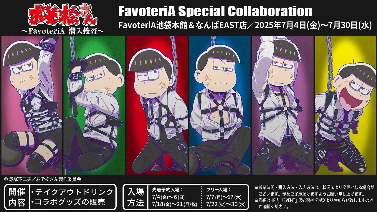 FavoteriA will be hosting a new Osomatsu-san themed collaboration cafe where you can enjoy a wide variety of menu items.