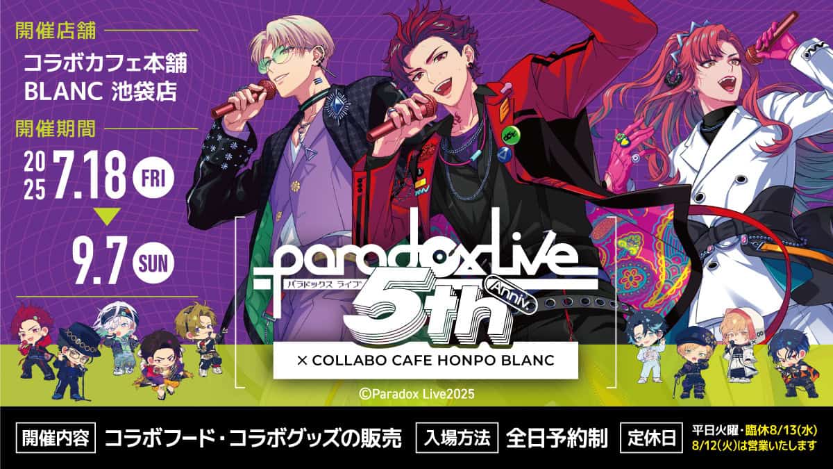 Paradox Live “5th anniversary” collab cafe to open in Tokyo and Osaka this Summer