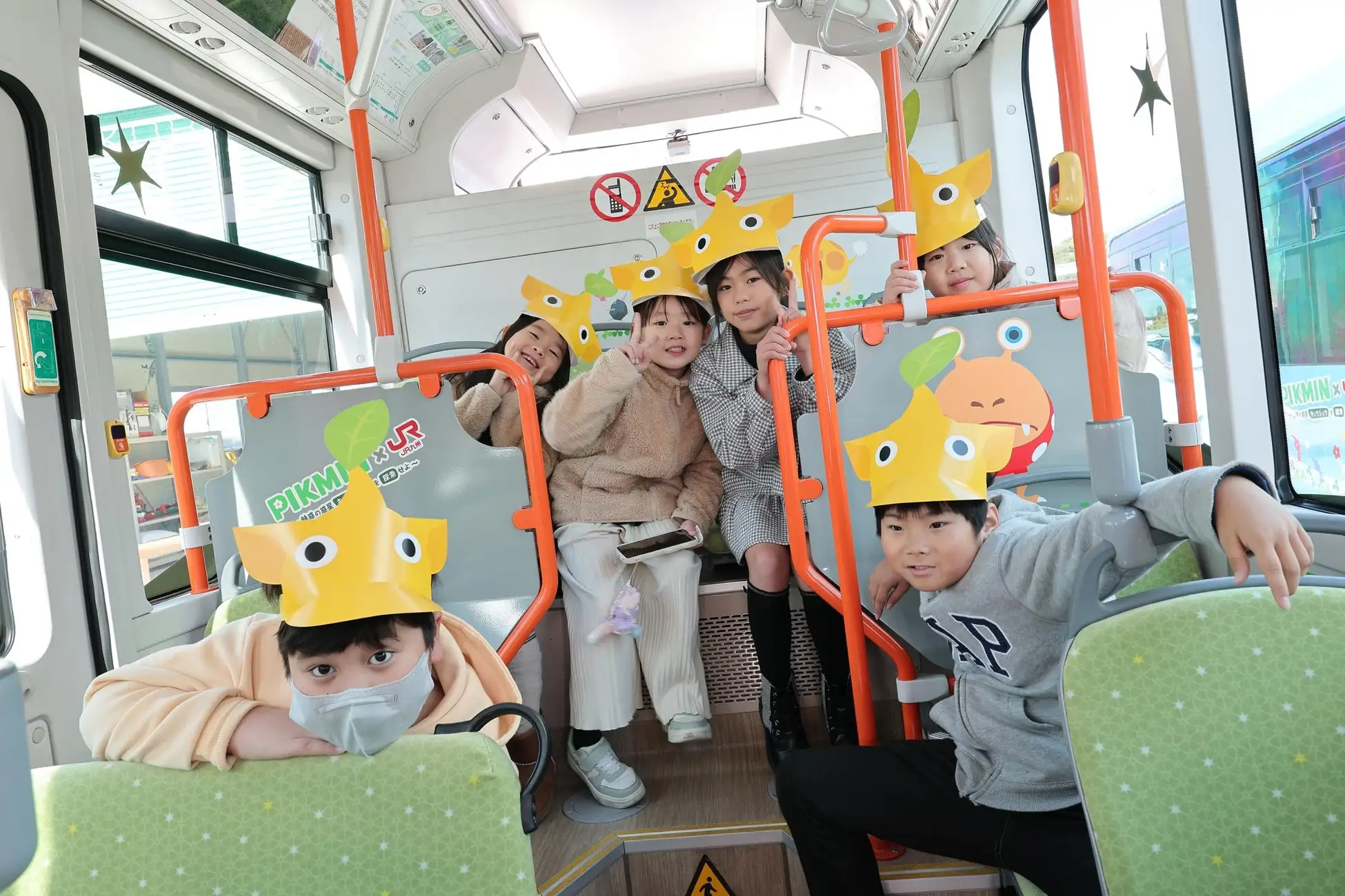 The children participating in the event were invited to ride the buses on the journey to Hita Station, allowing them to try and find all of the Pikmin hiding inside the bus.