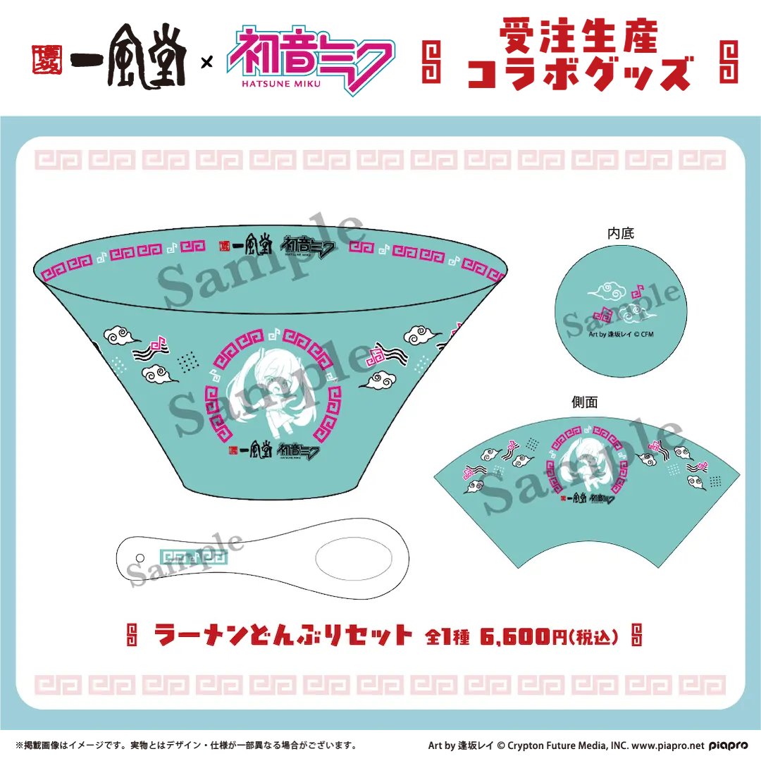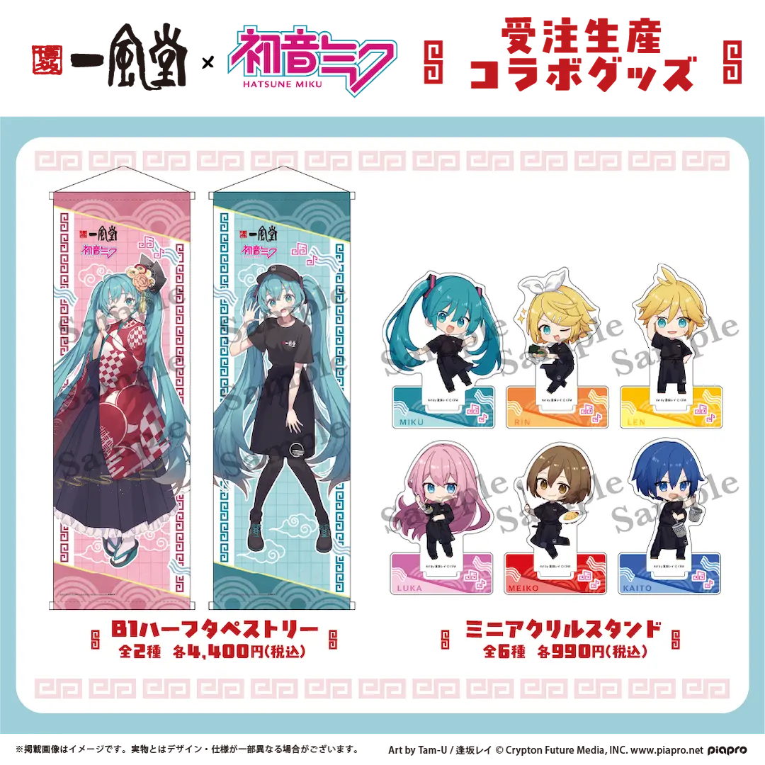 A post-event, made-to-order online sale is also planned, which will feature tapestries, mini acrylic stands of all the Piapro Characters, and an official ramen bowl.