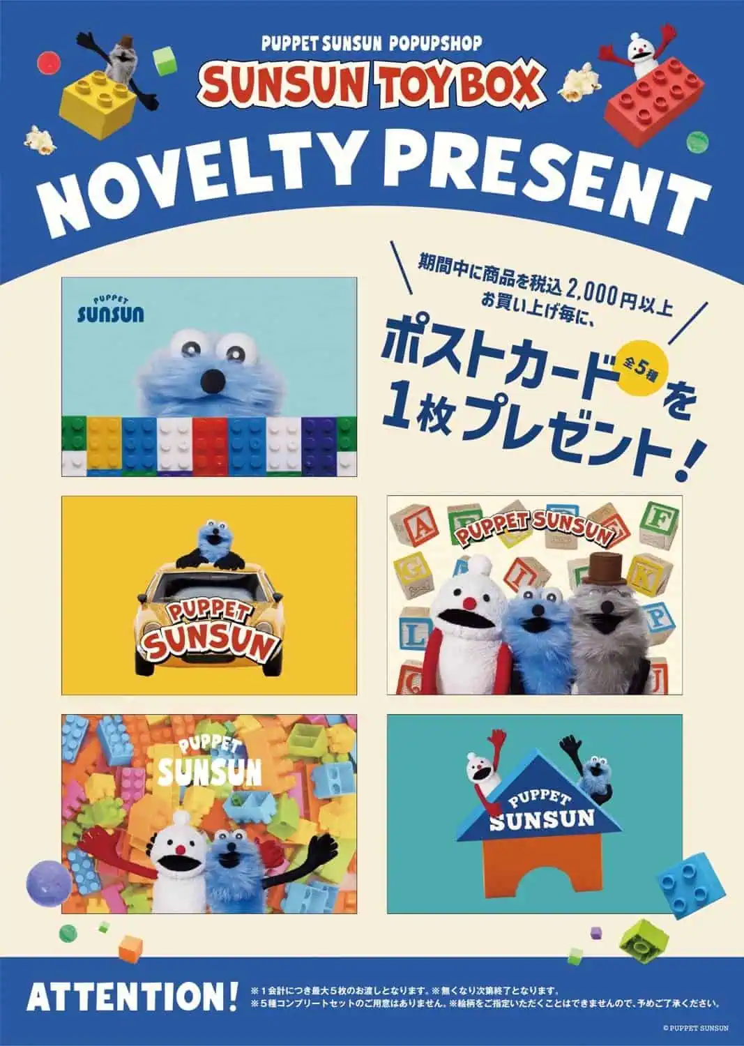 For every 2,000 yen spent at the pop up shop, customers will receive 1 exclusive postcard (selected at random from 5 types).