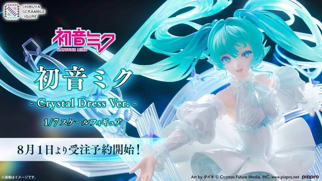 The figure, “Hatsune Miku -Crystal Dress Ver.-,” is being released by the premium figure brand, SHIBUYA SCRAMBLE FIGURE.