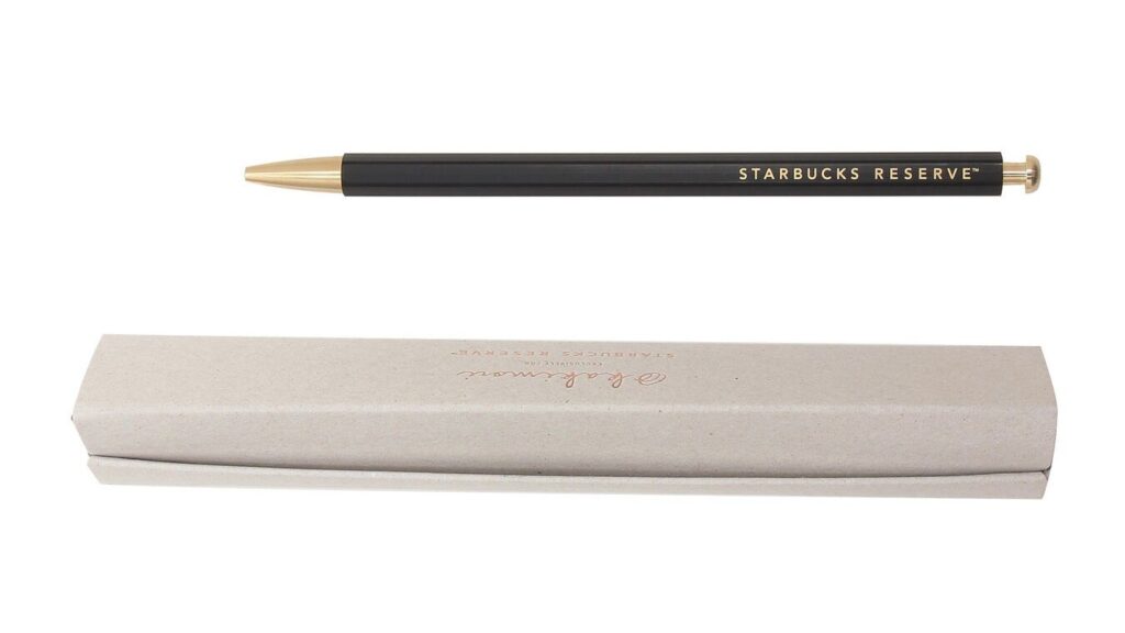 - Kakimori Elementary Pencil – ¥2,200 (approx. $14.44 USD / £11.62 GBP): This knock-mechanism pencil eliminates the need for sharpening, making it a convenient tool for focused work. It features the Starbucks Reserve® logo.