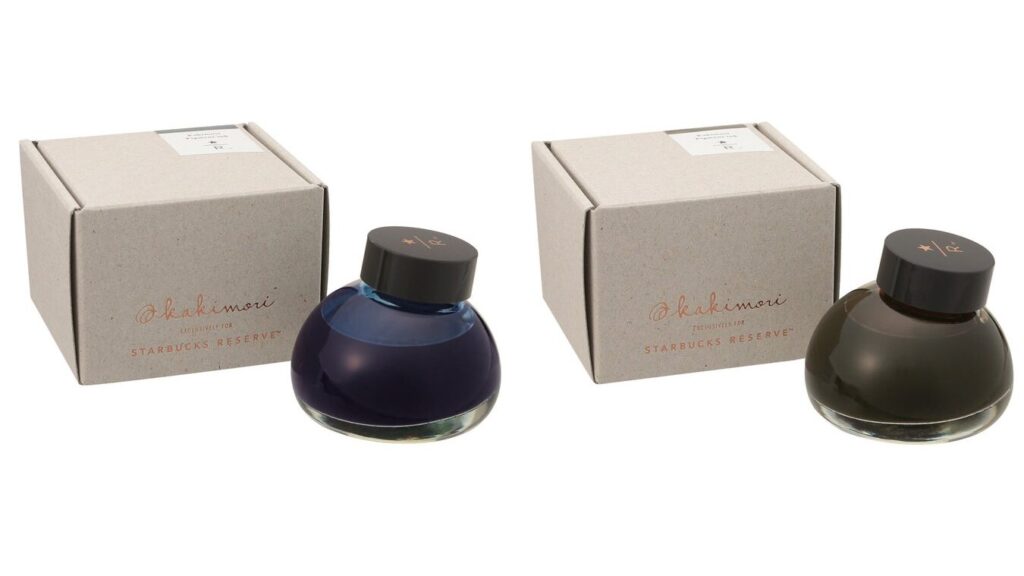 - Kakimori Pigment Ink – ¥3,600 (approx. $23.63 USD / £19.01 GBP): These fountain pen inks, “TOKYO NIGHT BLUE” and “ROASTED COFFEE BROWN,” are custom-blended by Kakimori. “TOKYO NIGHT BLUE” reflects the Tokyo skyline at night as seen from the Roastery terrace, while “ROASTED COFFEE BROWN” captures the essence of roasted coffee beans.