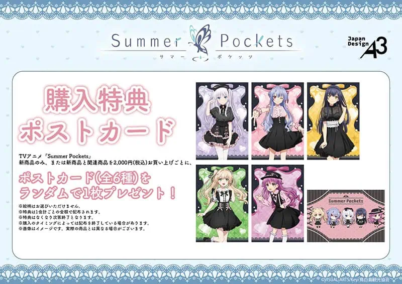 For every 2,000 yen spent at the pop up shop, customers will receive 1 exclusive postcard (selected at random from 6 types).