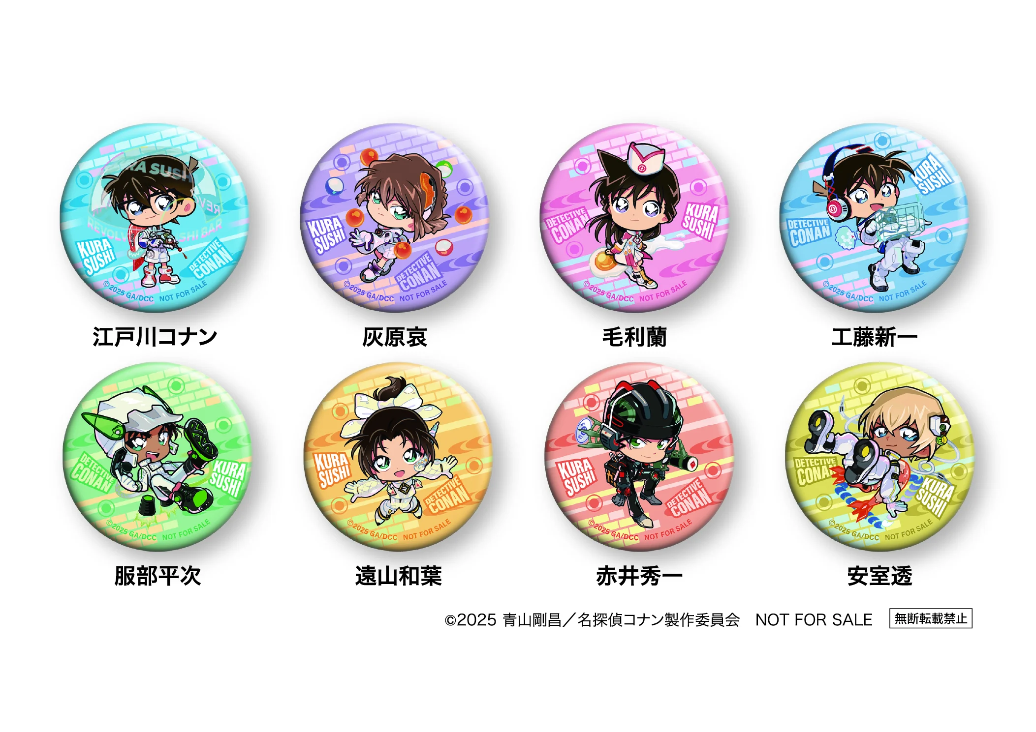 Let’s take a look at all of the Detective Conan themed merchandise and events coming to Kura Sushi as part of the collab!