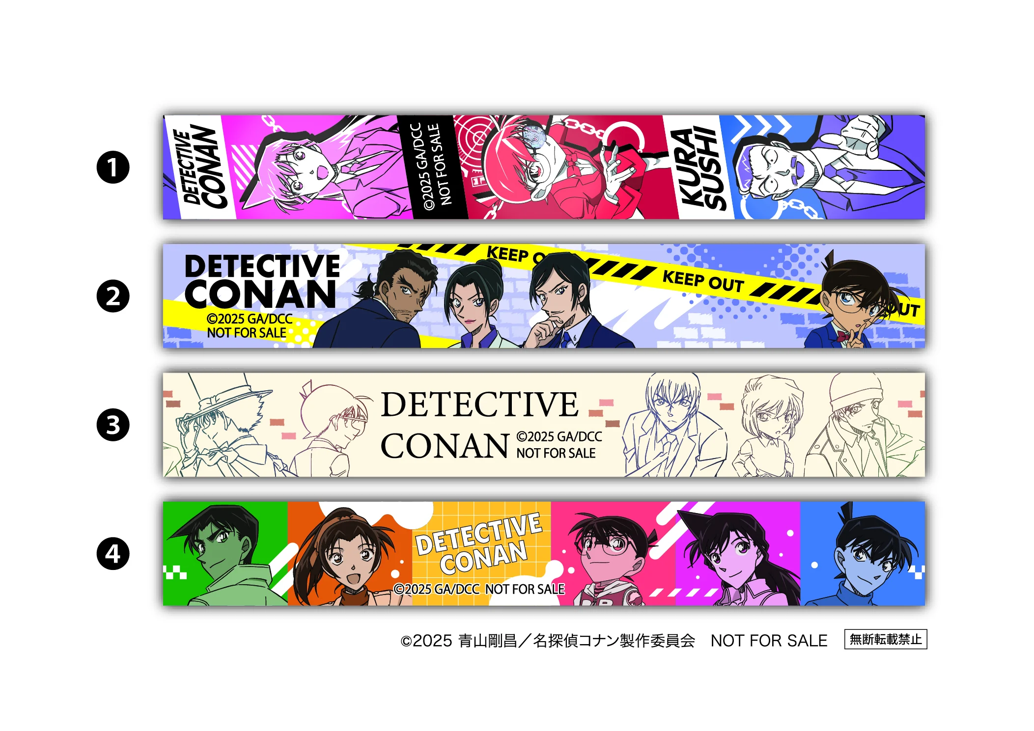 As an added incentive for “Detective Conan” enthusiasts dining at Kura Sushi, for every 2,500 yen (tax included) spent in a single transaction, customers will receive a complimentary gift of high-quality merchandise featuring original illustrations and memorable scenes from the new movie.