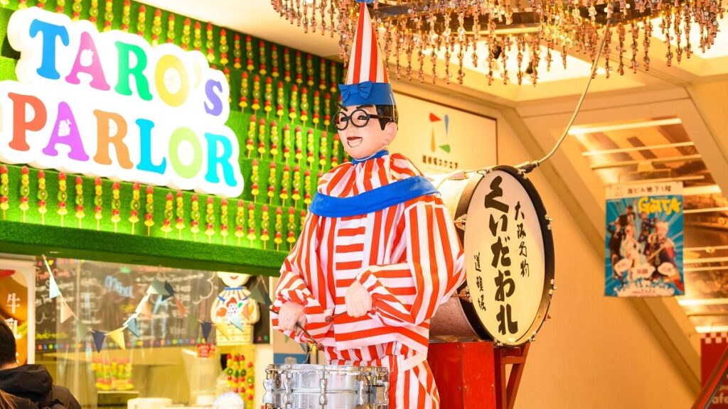 The Nakaza Kuidaore Building is particularly famous for the “Kuidaore Taro” mechanical doll located at its entrance and is recognized as one of the iconic symbols of the Dotonbori district.