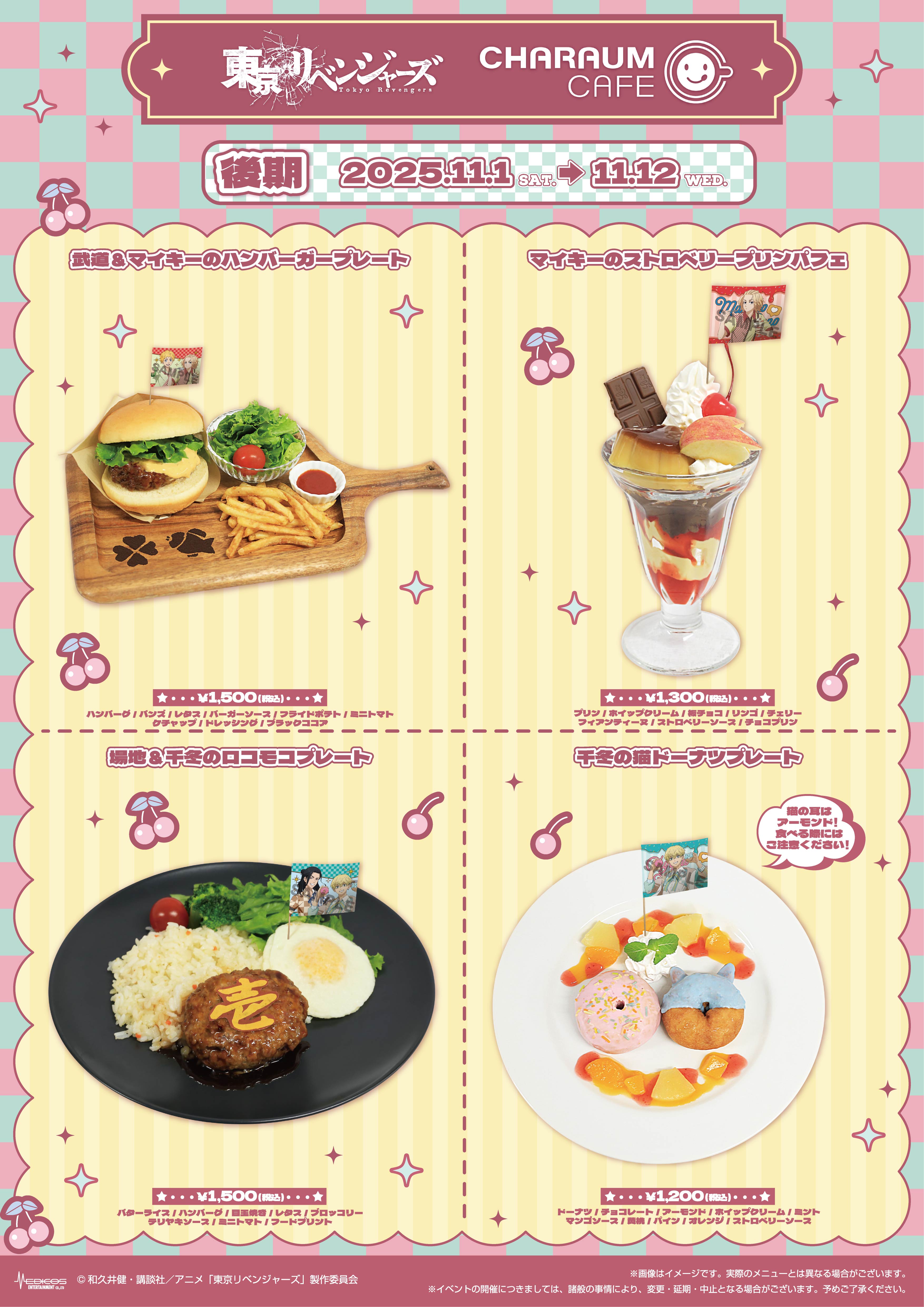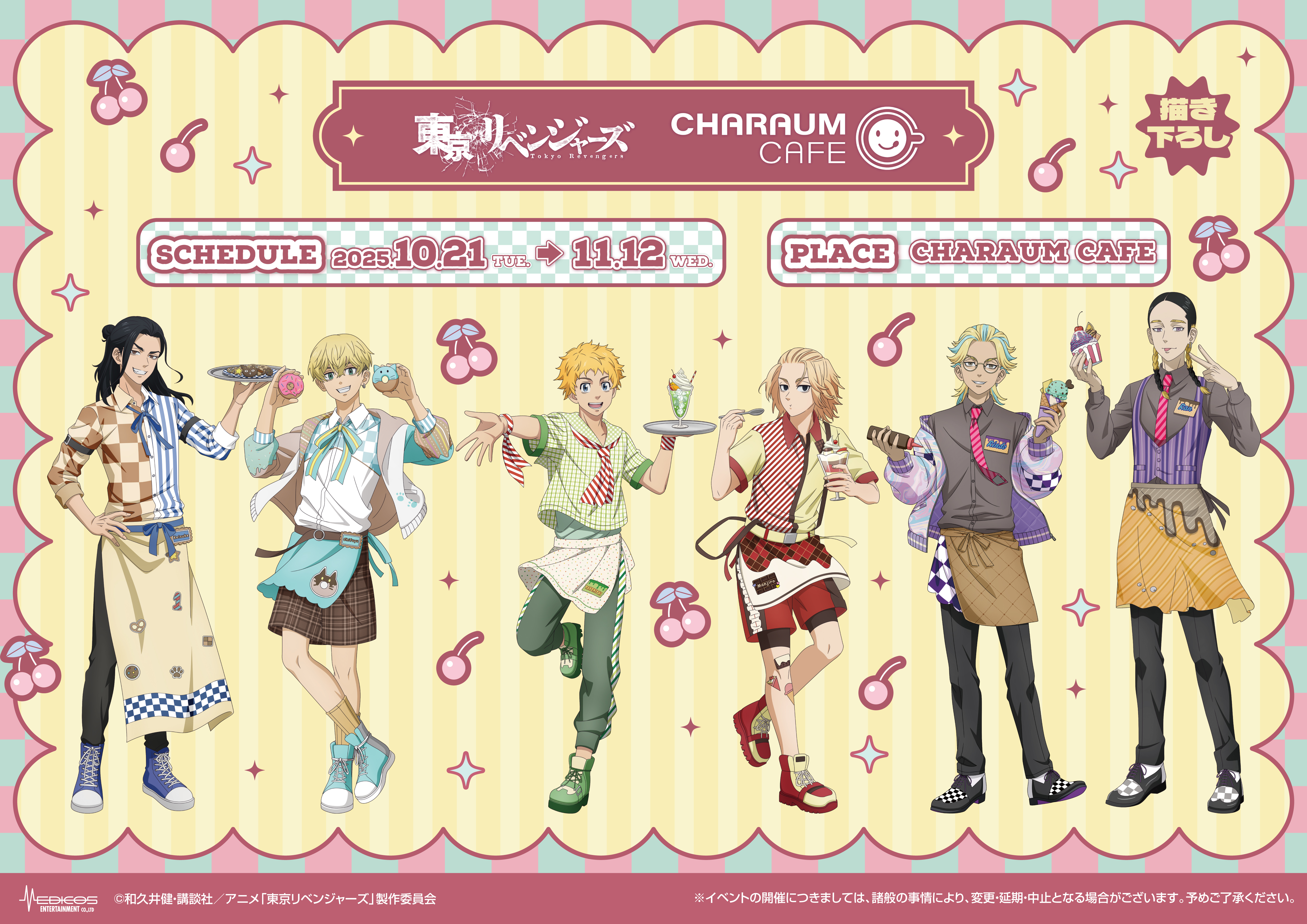 Charaum Cafe will be hosting a new Tokyo Revengers themed collaboration cafe where you can enjoy a wide variety of menu items.