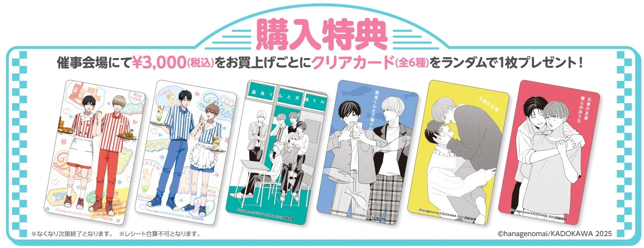 For every 3,000 yen spent at the pop up shop, customers will receive 1 exclusive postcard (selected at random from 6 types).