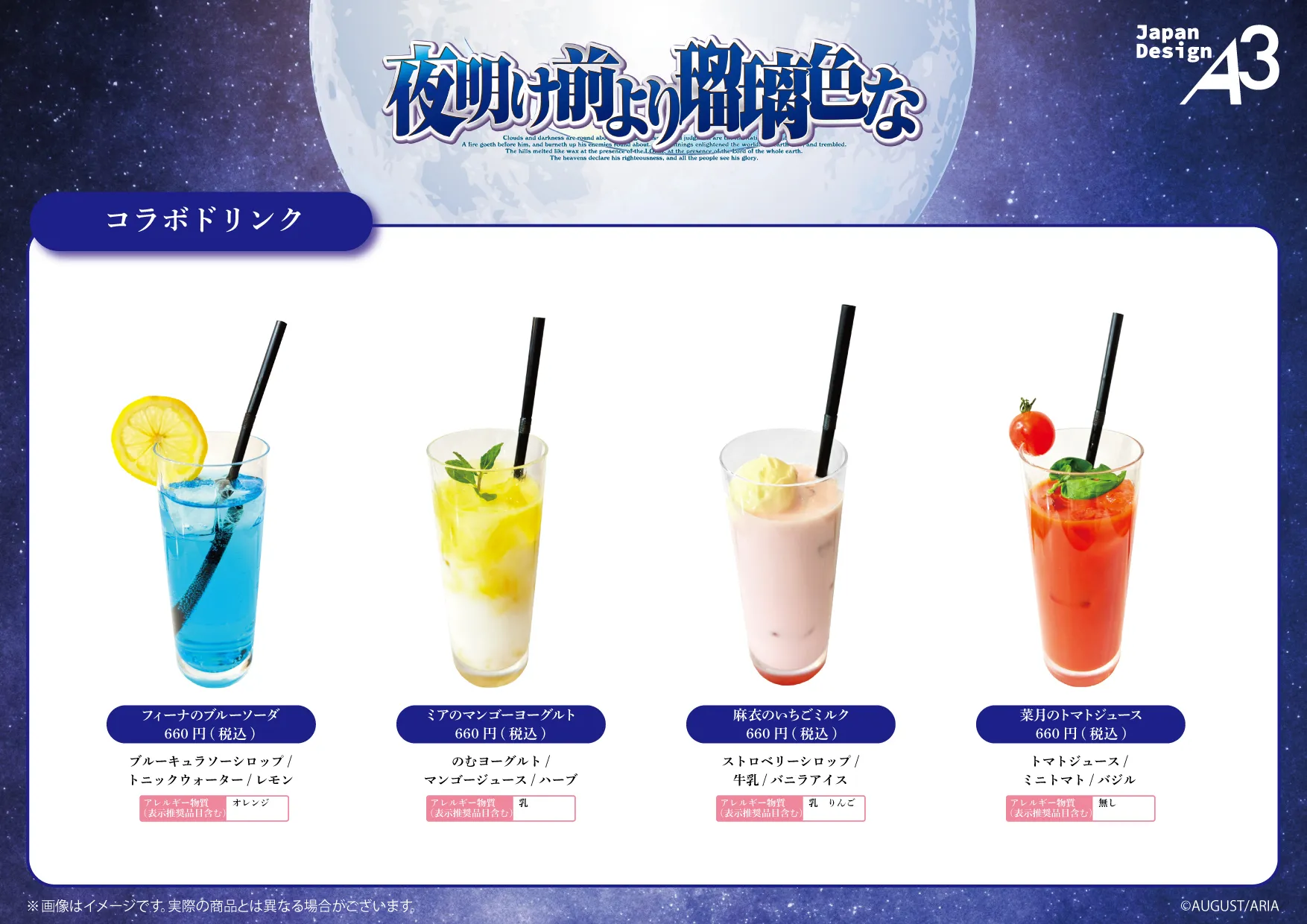 eeo Cafe will be hosting a new Yoake Mae Yori Ruriiro Na themed collaboration cafe where you can enjoy a wide variety of menu items.