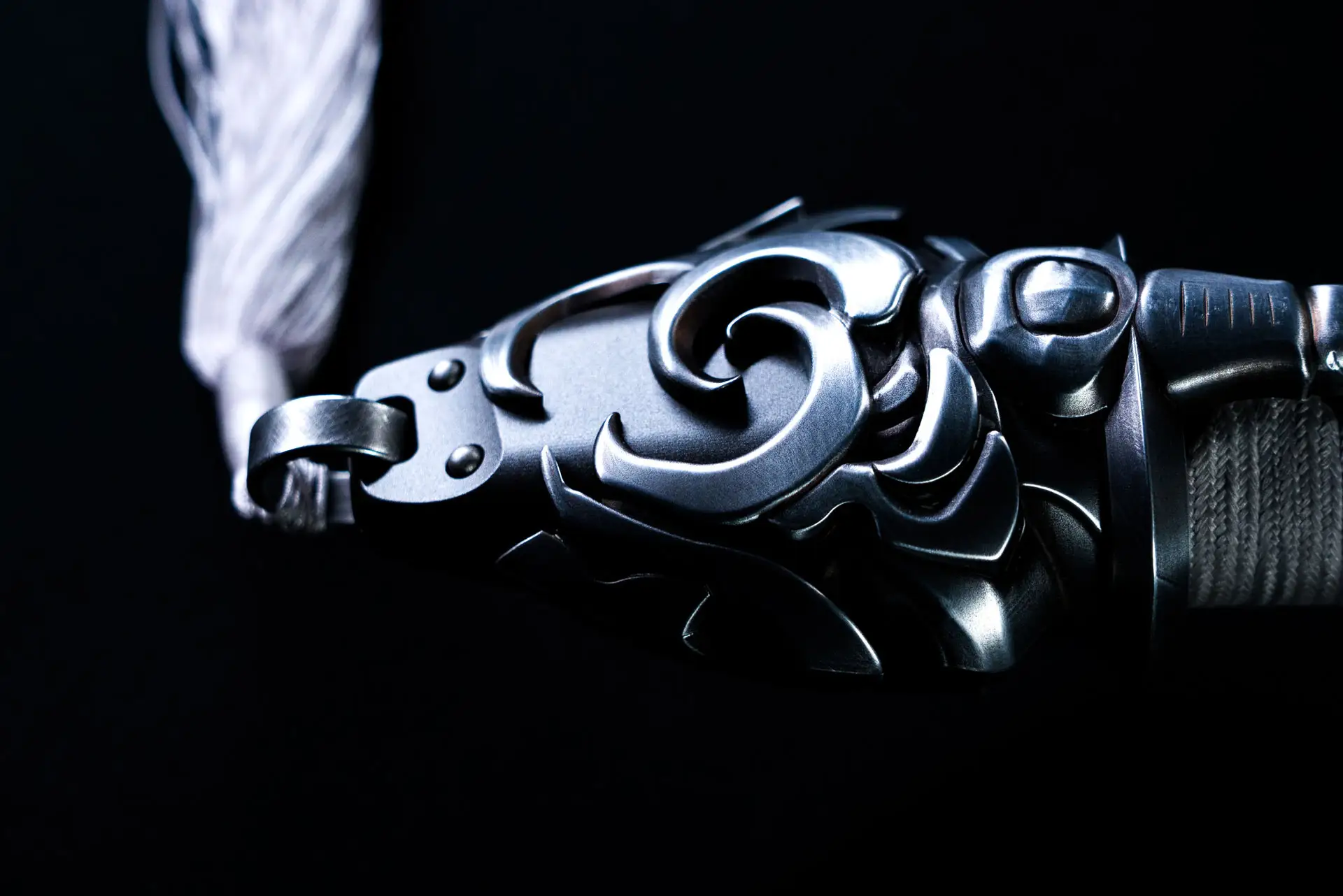 The complex and visually distinctive design of the tsuba has been precisely reproduced through a die-casting process, resulting in a smooth and high-quality feel.