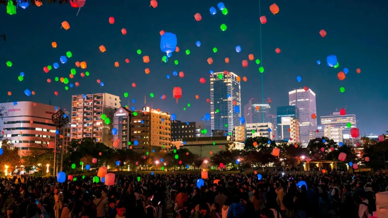 The Ogimachi Lantern Festa is a participatory event where hundreds of lanterns are launched into the night sky.